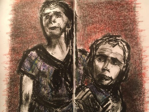 A number of these character sketches form part of a sketchbook entitled 'Bald Spot, Moles and Scars', held at the Brooklyn Art Library in New York as part of the Sketchbook Project.